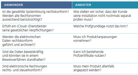 Im Rahmen der Digitalisierung wird immer wieder die Frage laut, ob die geplante Lösung rechtskonform sei. Die Geschäftsbücherverordnung ( GeBüV ) ist das massgebliche Rahmenwerk für das Führen und Aufbewahren elektronischer Informationen in der Schweiz. Fast alle Gesetze in der Schweiz verweisen bei der Umsetzung auf sie. Doch wann erfüllt ein System tatsächlich die rechtlichen Anforderungen ? Um diese Frage zu beantworten, führt das krm seit 2017 strukturierte Prüfungen durch und erstellt einen Bericht mit oder ohne Zertifikat.